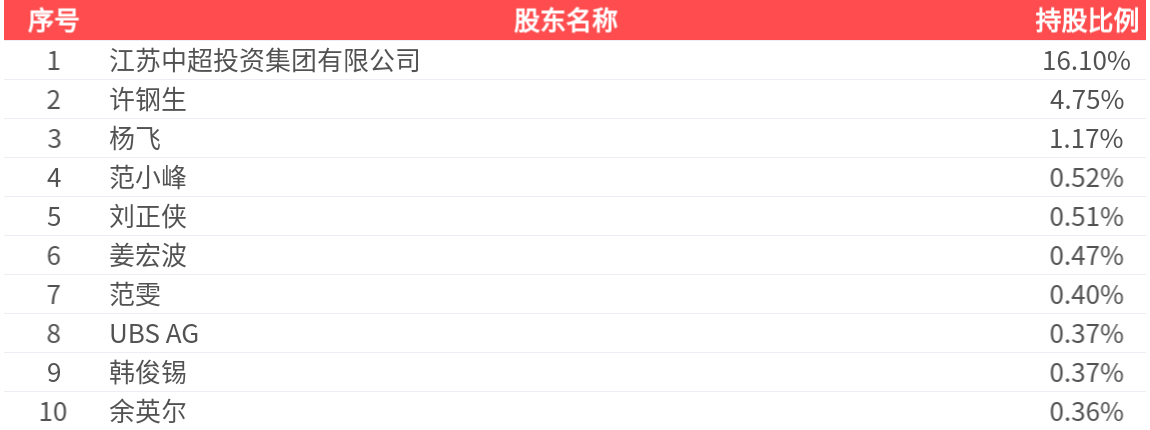 公司股东户数为7.58万户,前十大股东持股数量为3.42亿股,占总股本比例为25.01%,前十大股东持股情况如下: