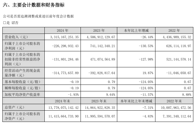 其中第四季度,公司营业收入为9.89亿元,同比下降49.9%;归母净利润亏损1623万元,同比下降103.2%;扣非归母净利润为1621万元,同比下降96.6%;EPS为-0.0133元。