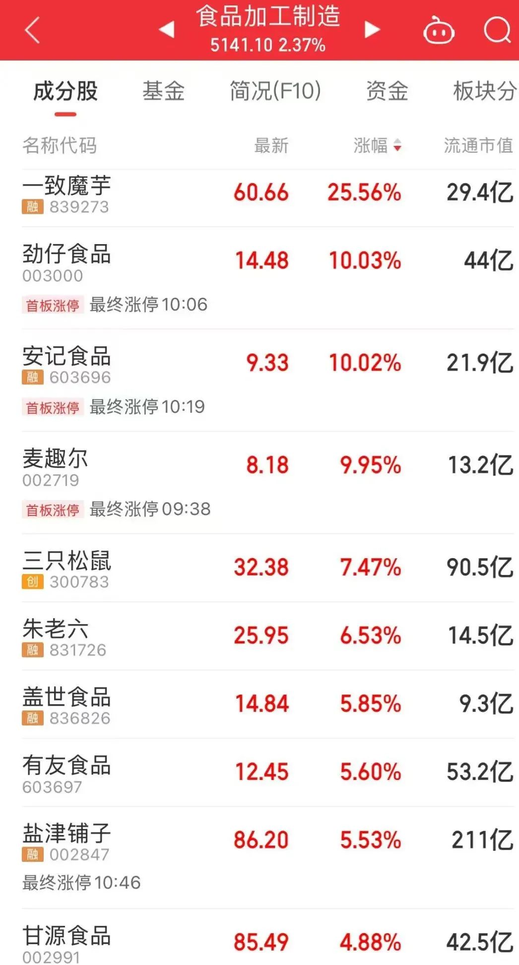 食品加工板块上午大涨,劲仔食品、安记食品、麦趣尔等多股涨停。除了“吃喝玩乐穿”,爱美之心同样也要兼顾,美容护理板块上午大涨。