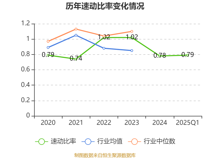 2025年第一季度,公司流动比率为0.85,速动比率为0.79。