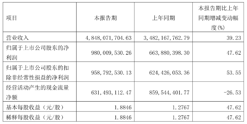 中证智能财讯东鹏饮料(605499)4月15日披露2025年第一季度报告。公司实现营业总收入48.48亿元,同比增长39.23%;归母净利润9.8亿元,同比增长47.62%;扣非净利润9.59亿元,同比增长53.55%;经营活动产生的现金流量净额为6.31亿元,同比下降26.53%;报告期内,东鹏饮料基本每股收益为1.8846元,加权平均净资产收益率为11.99%。