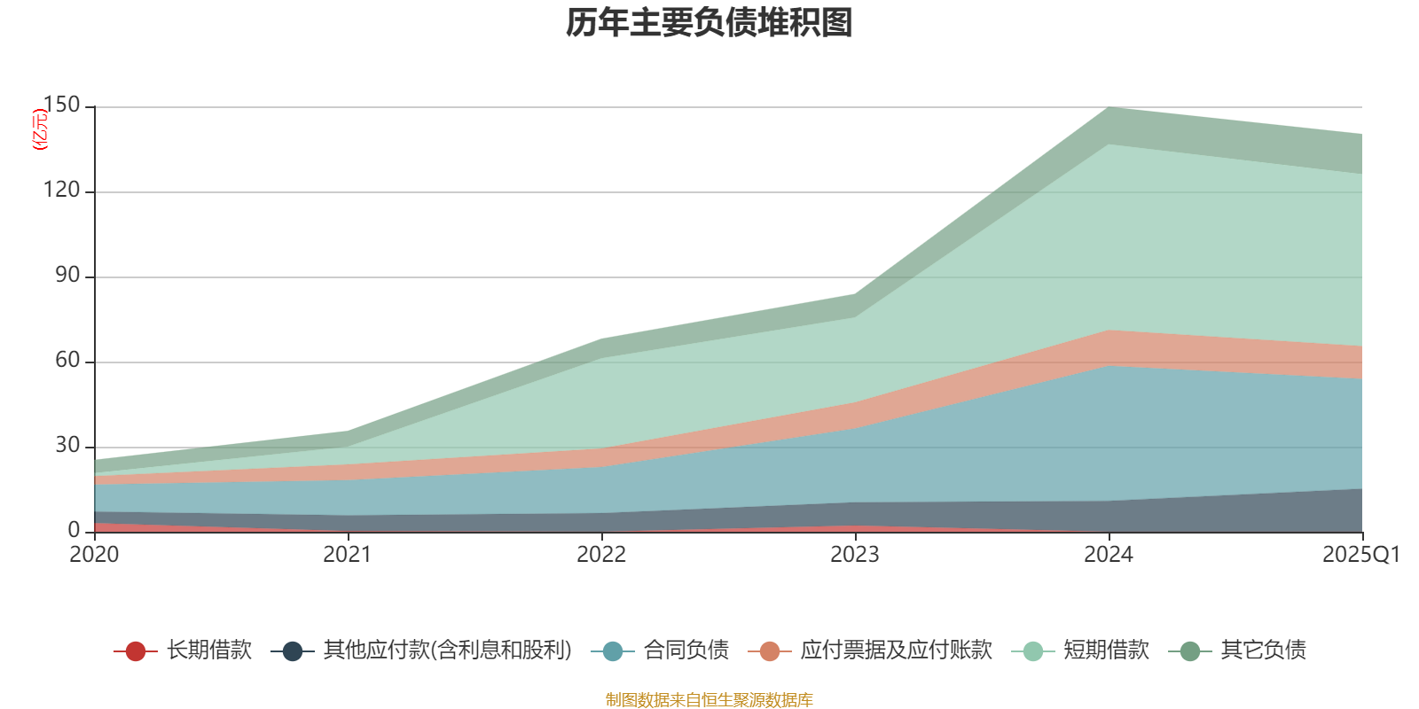负债重大变化方面,截至2025年一季度末,公司合同负债较上年末减少18.71%,占公司总资产比重下降3.93个百分点;短期借款较上年末减少7.42%,占公司总资产比重下降2.15个百分点;其他应付款(含利息和股利)较上年末增加39.45%,占公司总资产比重上升1.89个百分点;应付职工薪酬较上年末减少49.81%,占公司总资产比重下降0.91个百分点。
