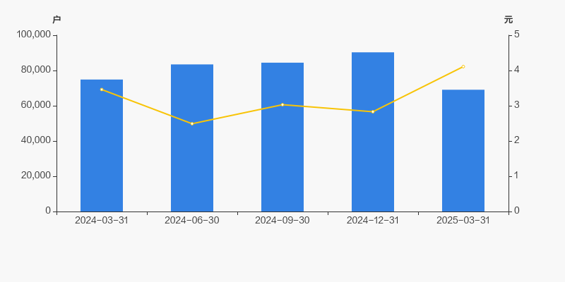 截至2025年3月31日,公司最新总股本为40.09亿股,其中流通股本为40.08亿股。户均持有流通股数量由上期的4.44万股上升至5.8万股,户均流通市值23.85万元。