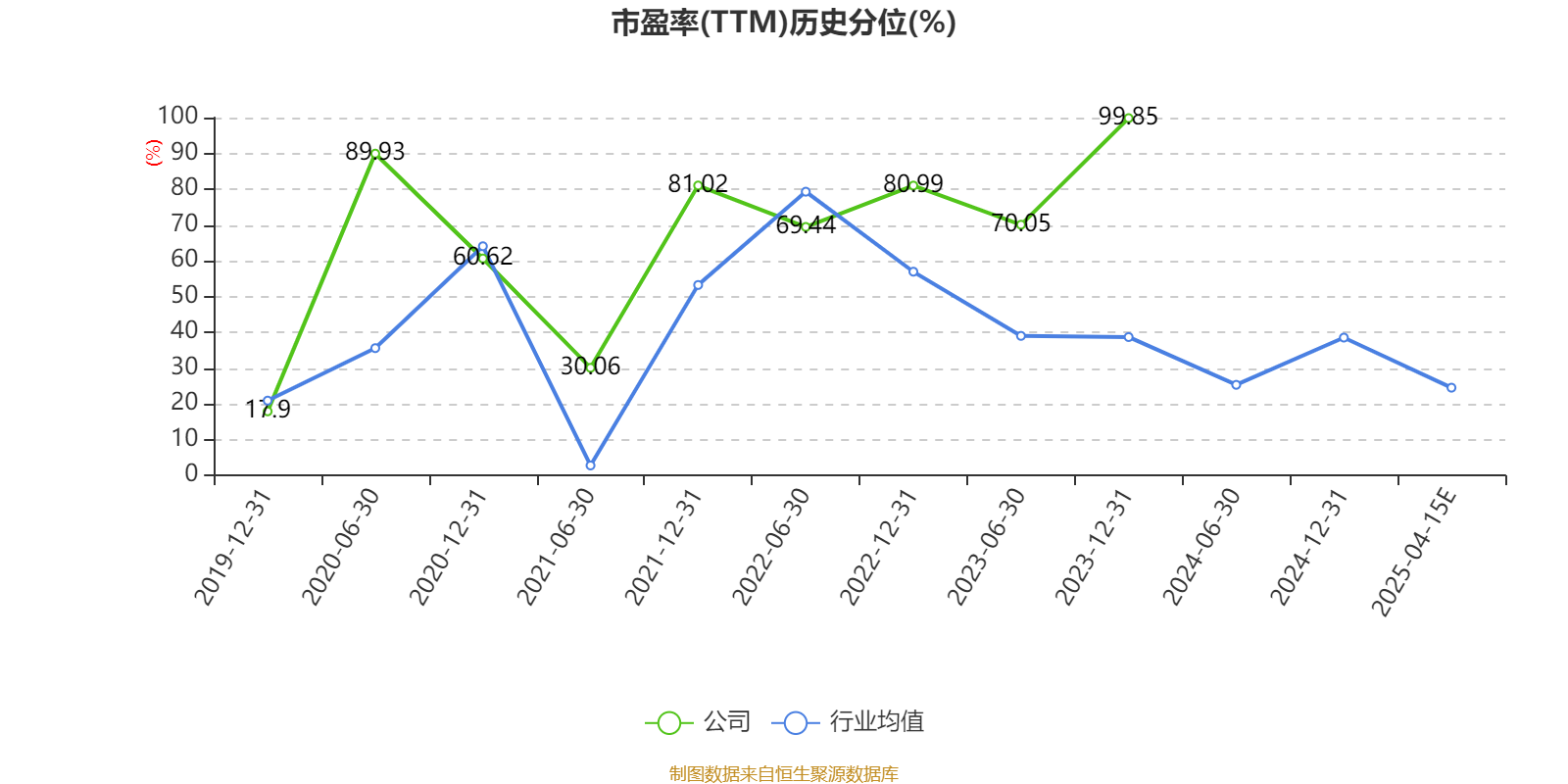 市盈率、市净率为负时,不显示当期分位数,会导致折线图中断。