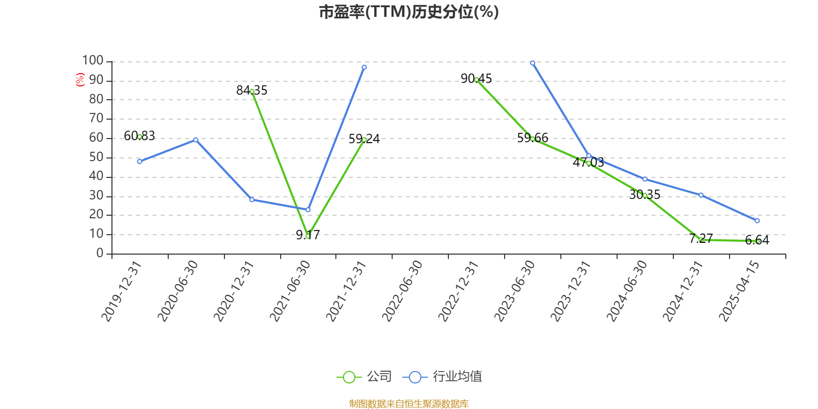 市盈率、市净率为负时,不显示当期分位数,会导致折线图中断。