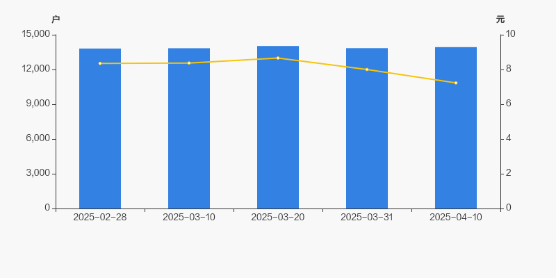 2025年2月28日至今,公司股东户数有所增长,区间涨幅为0.87%。2025年2月28日至2025年4月10日区间股价下降13.41%。