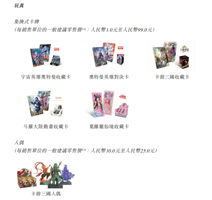 卡游最新披露的招股书显示,其为中国领先的泛娱乐产品(即基于IP开发的实体产品,如玩具、文具及其他消费品等)公司之一。