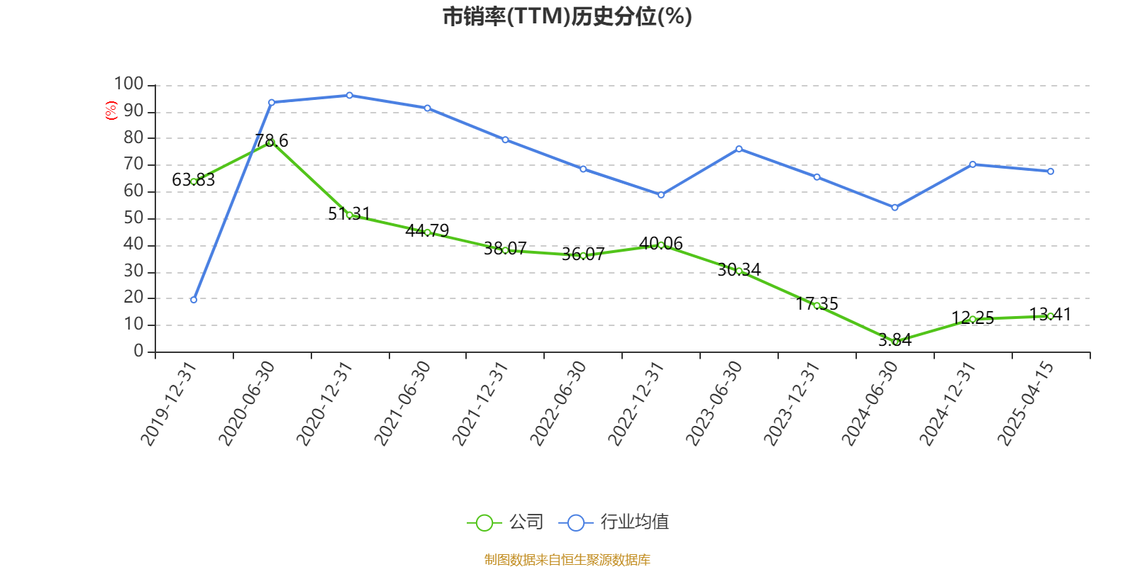 市盈率、市净率为负时,不显示当期分位数,会导致折线图中断。