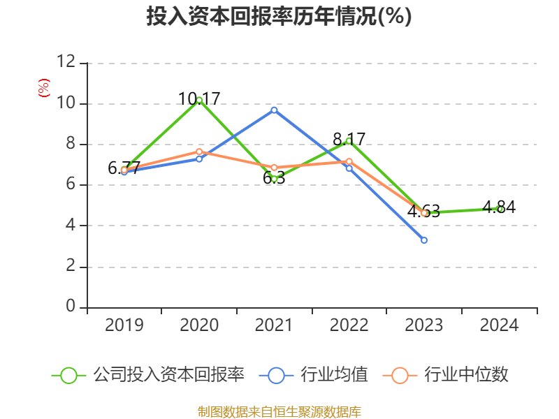 数据显示,2024年公司加权平均净资产收益率为9.24%,较上年同期上升2.99个百分点。公司2024年投入资本回报率为4.84%,较上年同期上升0.21个百分点。