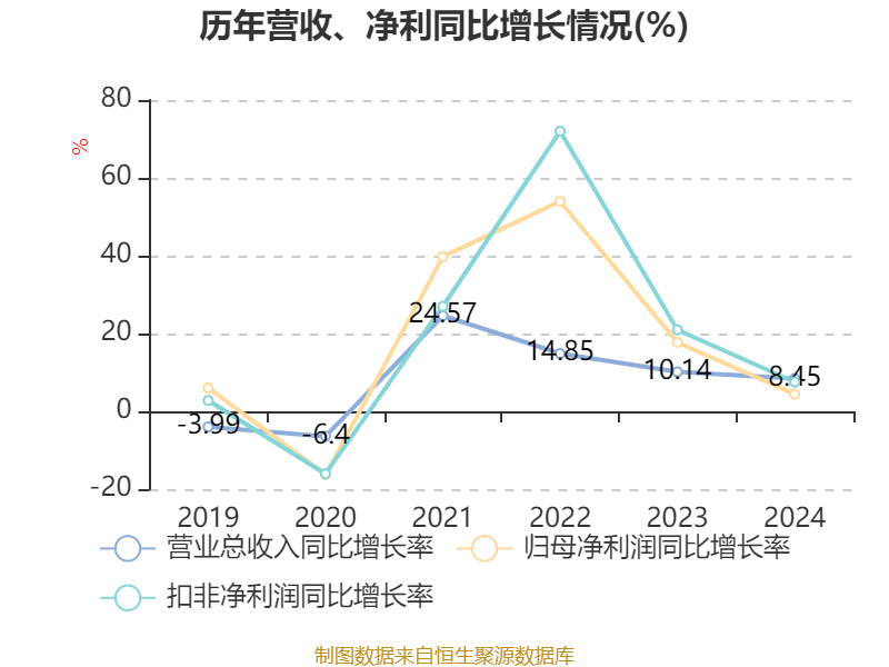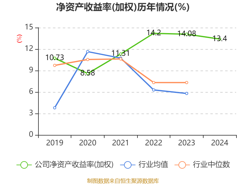 数据显示,2024年公司加权平均净资产收益率为13.4%,较上年同期下降0.68个百分点。公司2024年投入资本回报率为11.54%,较上年同期下降1.17个百分点。