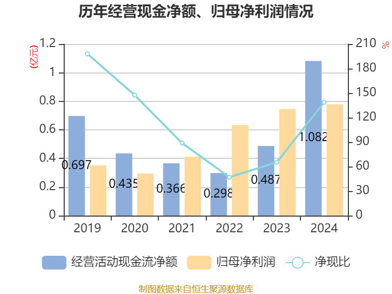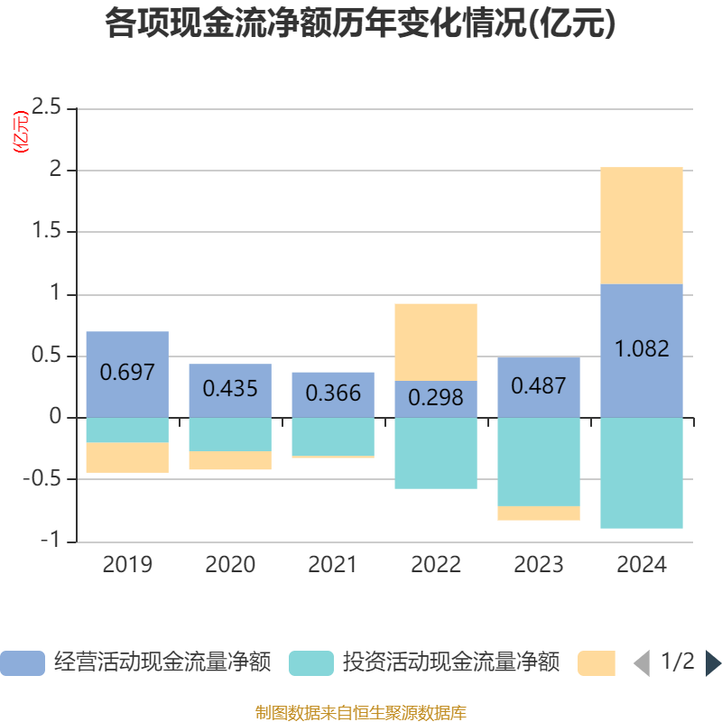截至2024年,公司经营活动现金流净额为1.08亿元,同比增长122.17%;筹资活动现金流净额9426.16万元,同比增加1.06亿元;投资活动现金流净额-8948.33万元,上年同期为-7152.46万元。