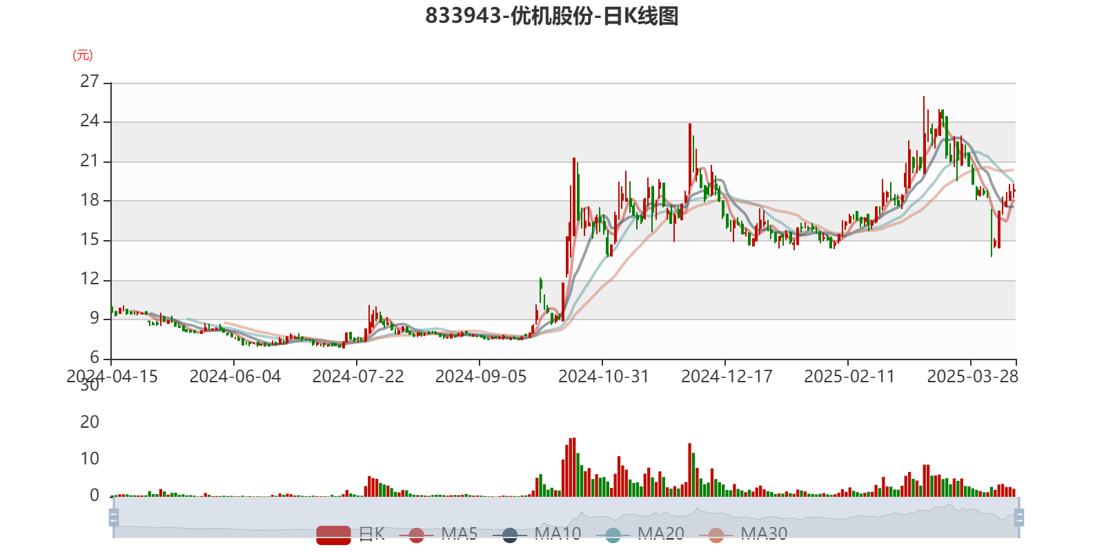 以4月15日收盘价计算,优机股份目前市盈率(TTM)约为24.53倍,市净率(LF)约3.14倍,市销率(TTM)约1.97倍。