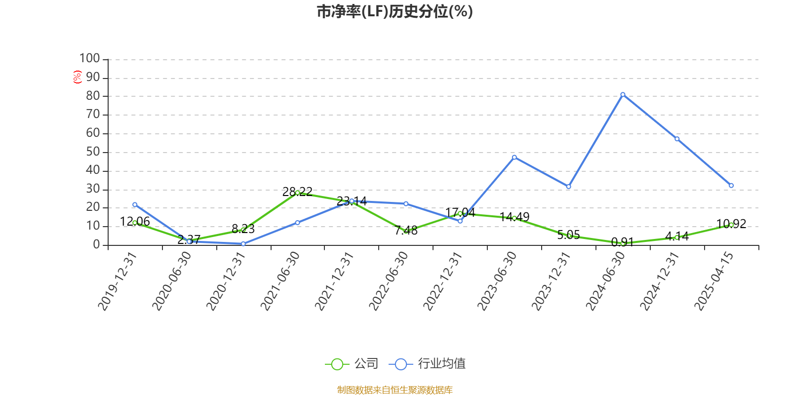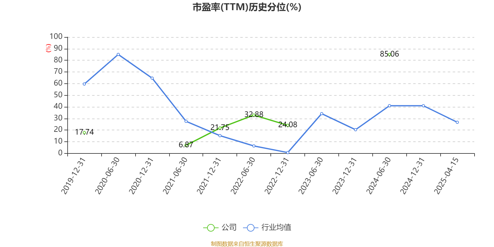 市盈率、市净率为负时,不显示当期分位数,会导致折线图中断。