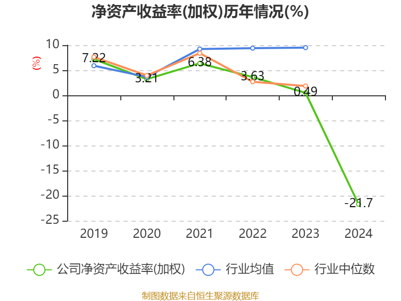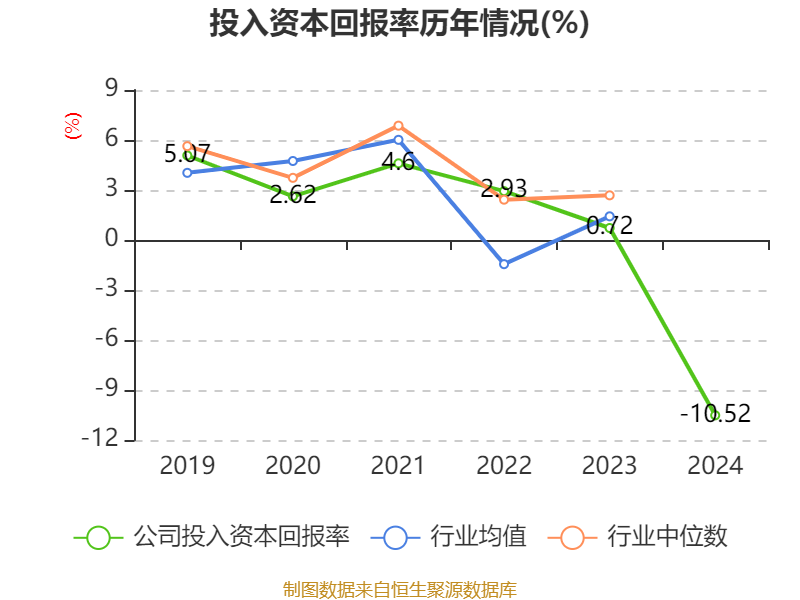 数据显示,2024年公司加权平均净资产收益率为-21.7%,较上年同期下降22.19个百分点。公司2024年投入资本回报率为-10.52%,较上年同期下降11.24个百分点。