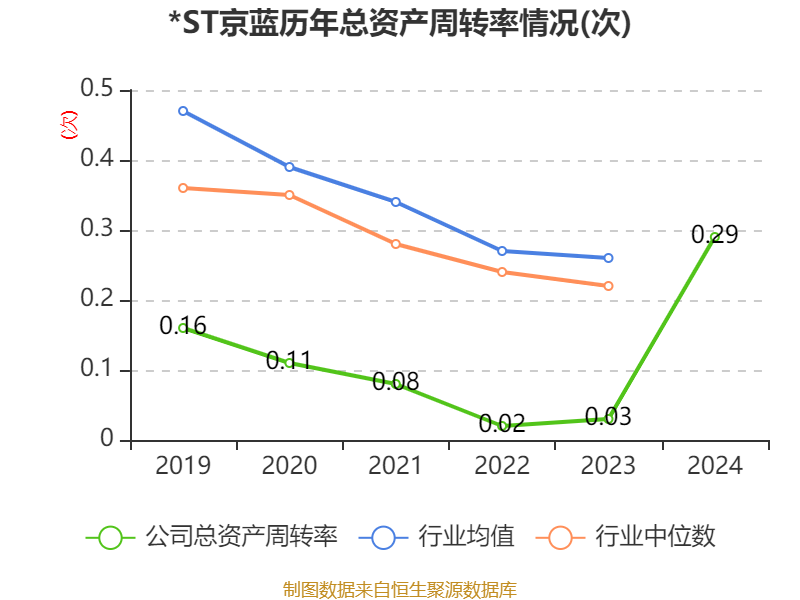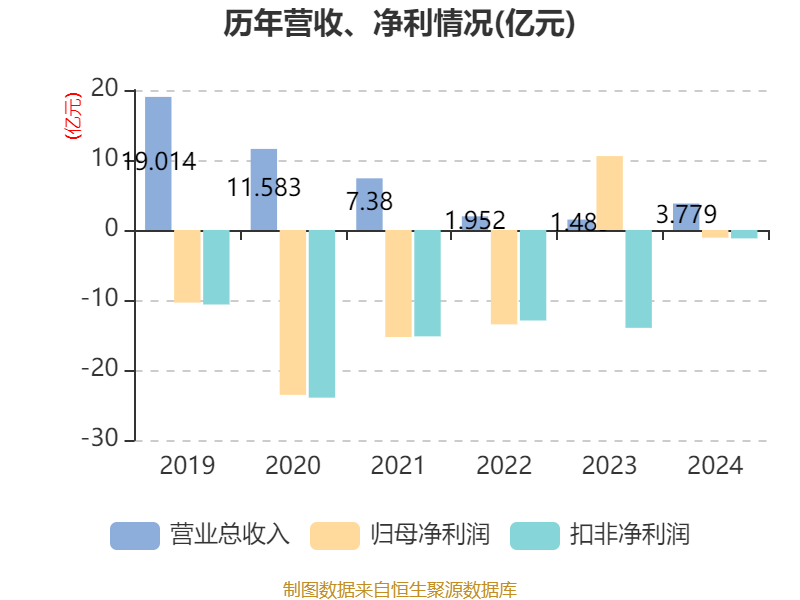 中证智能财讯 *ST京蓝(000711)4月16日披露2024年年度报告。2024年,公司实现营业总收入3.78亿元,同比增长153.69%;归母净利润亏损1.1亿元,上年同期盈利10.56亿元;扣非净利润亏损1.19亿元,上年同期亏损13.98亿元;经营活动产生的现金流量净额为-2.77亿元,上年同期为-1.61亿元;报告期内,*ST京蓝基本每股收益为-0.0385元,加权平均净资产收益率为-16.14%。