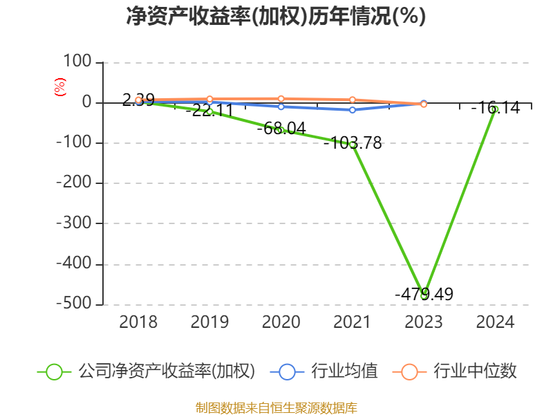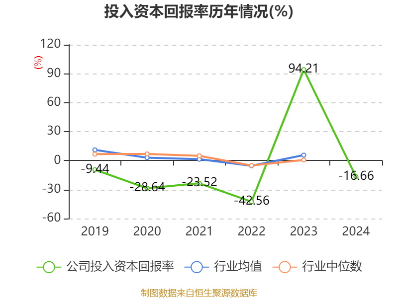 数据显示,2024年公司加权平均净资产收益率为-16.14%,较上年同期上升463.35个百分点。公司2024年投入资本回报率为-16.66%,较上年同期下降110.87个百分点。