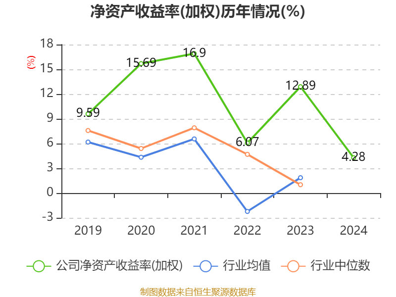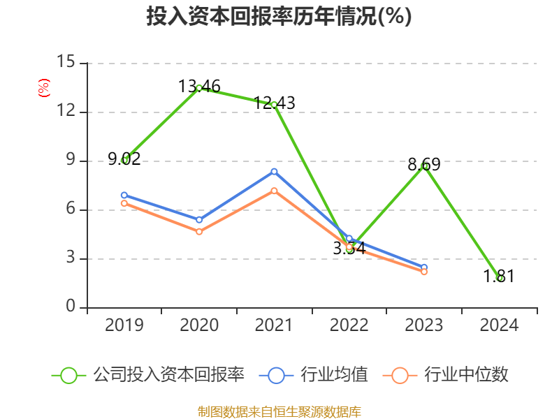 数据显示,2024年公司加权平均净资产收益率为4.28%,较上年同期下降8.61个百分点。公司2024年投入资本回报率为1.81%,较上年同期下降6.88个百分点。