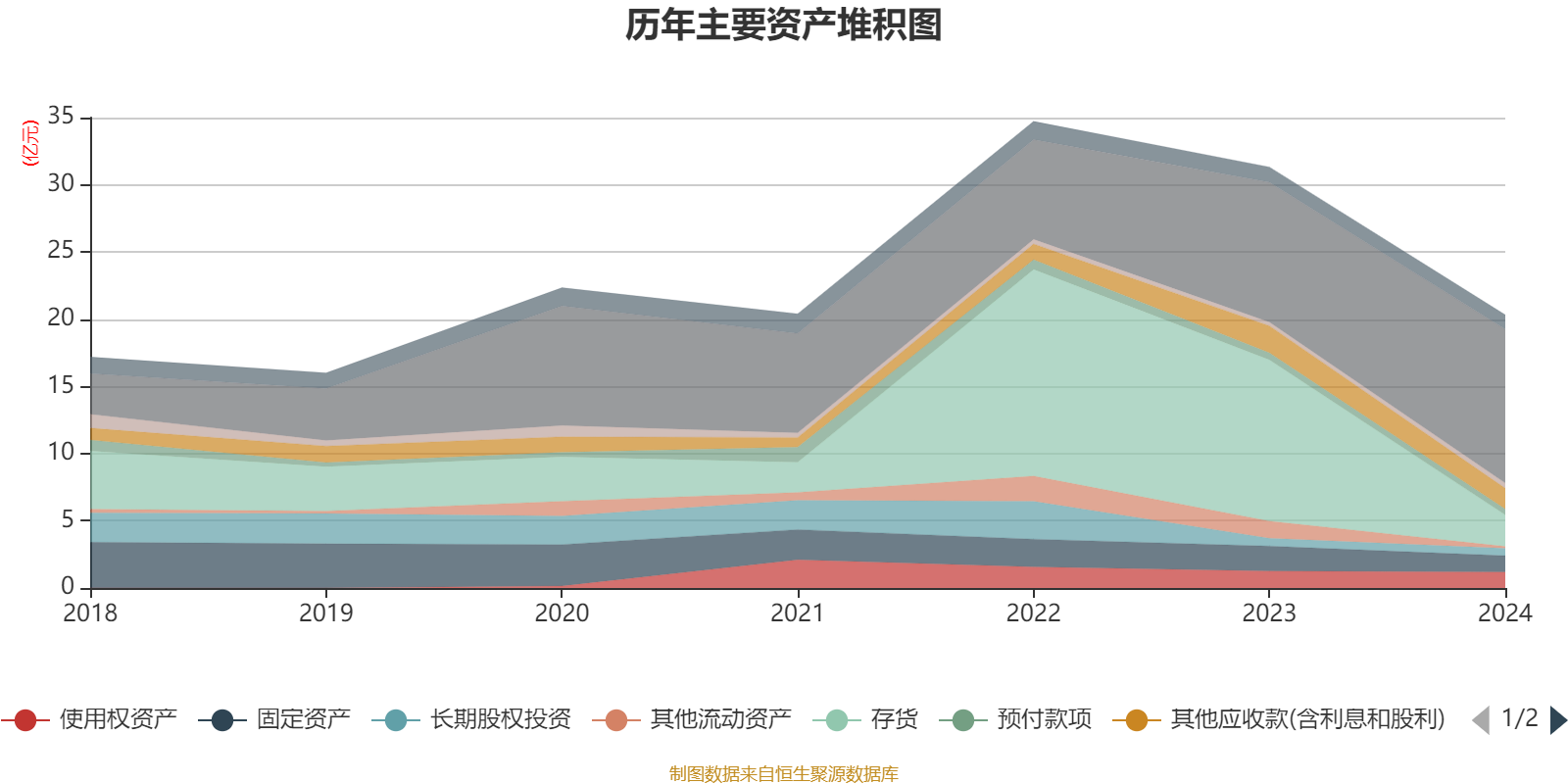 资产重大变化方面,截至2024年末,公司存货较上年末减少80.41%,占公司总资产比重下降26.72个百分点;货币资金较上年末增加10.1%,占公司总资产比重上升23.12个百分点;其他流动资产较上年末减少89.51%,占公司总资产比重下降3.42个百分点;使用权资产较上年末减少5.98%,占公司总资产比重上升1.8个百分点。