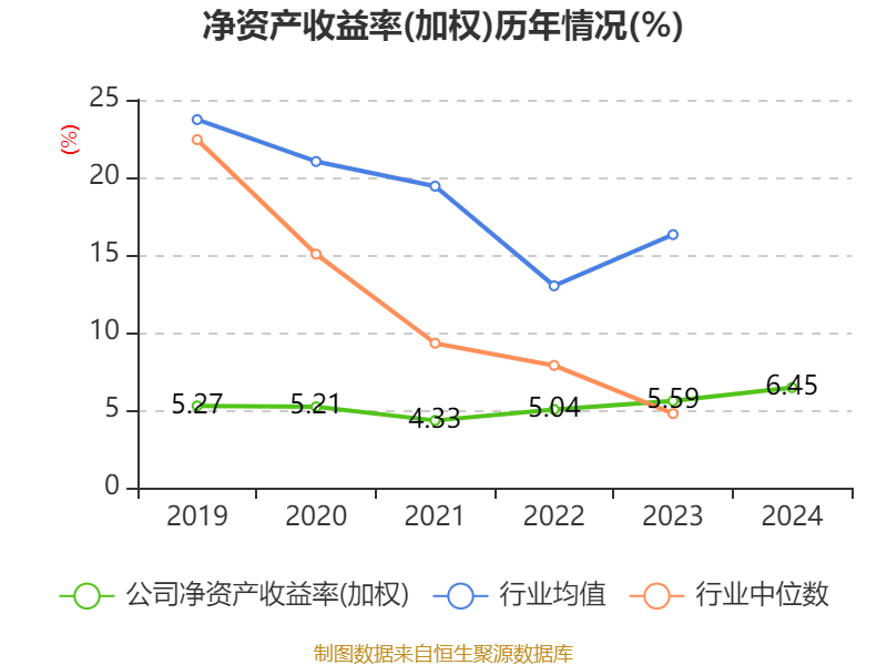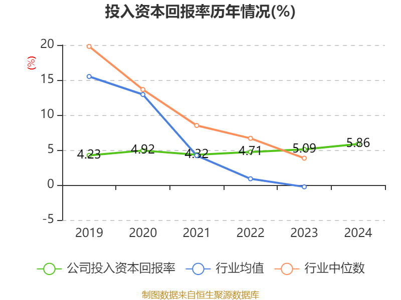 数据显示,2024年公司加权平均净资产收益率为6.45%,较上年同期上升0.86个百分点。公司2024年投入资本回报率为5.86%,较上年同期上升0.77个百分点。