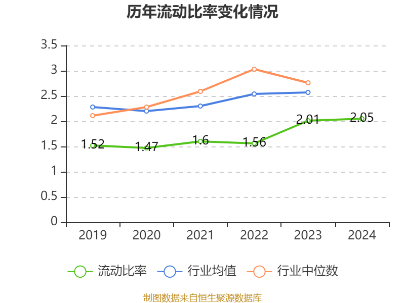 2024年,公司流动比率为2.05,速动比率为1.64。