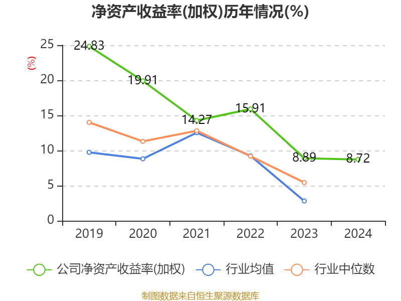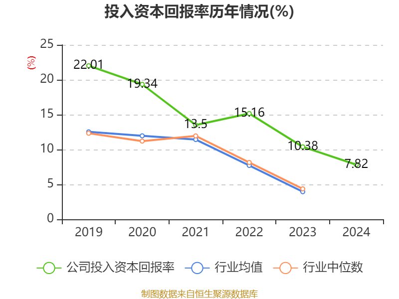 数据显示,2024年公司加权平均净资产收益率为8.72%,较上年同期下降0.17个百分点。公司2024年投入资本回报率为7.82%,较上年同期下降2.56个百分点。