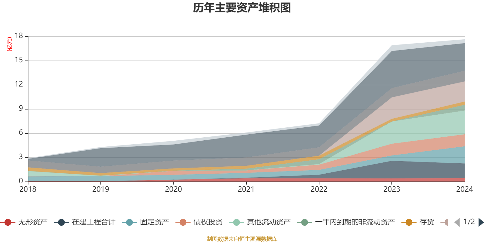 资产重大变化方面,截至2024年末,公司固定资产较上年末增加219.78%,占公司总资产比重上升8.13个百分点;货币资金较上年末减少25.58%,占公司总资产比重下降7.8个百分点;一年内到期的非流动资产占公司总资产的4.06%,上年末为0;在建工程合计较上年末减少16.3%,占公司总资产比重下降2.55个百分点。