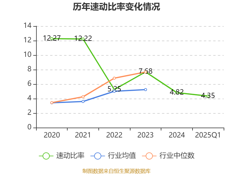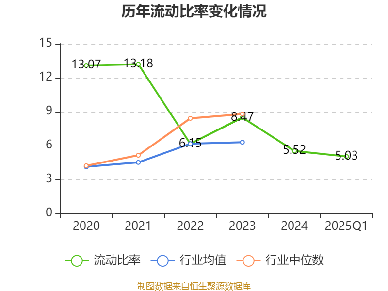 2025年第一季度,公司流动比率为5.03,速动比率为4.35。