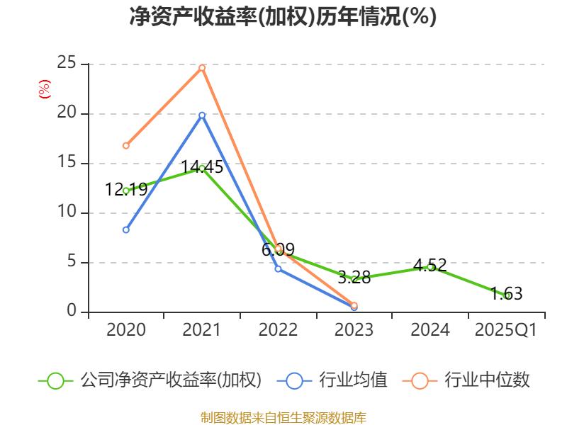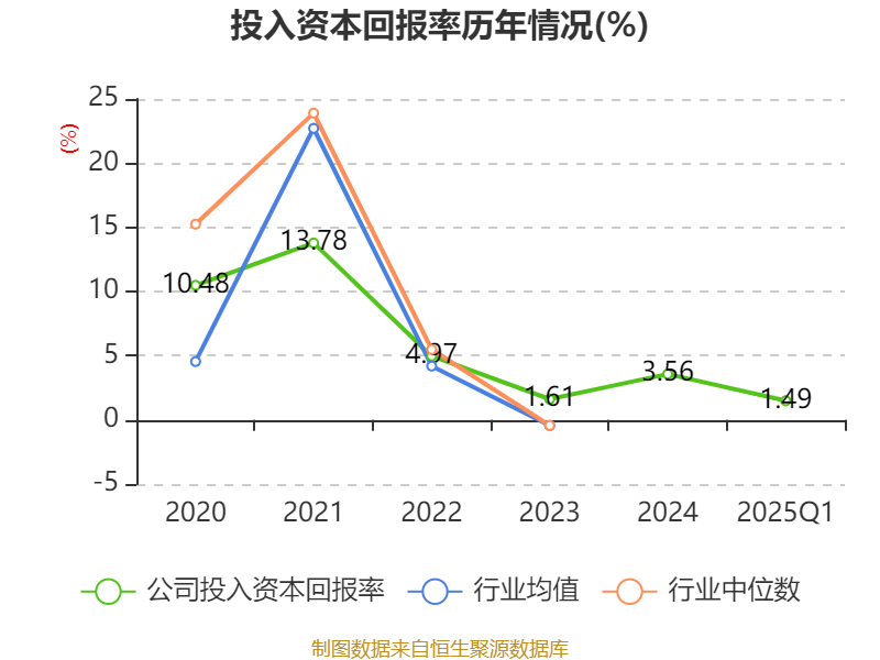 盈利能力方面, 2025年一季度公司加权平均净资产收益率为1.63%,同比上升0.67个百分点。公司2025年第一季度投入资本回报率为1.49%,较上年同期上升0.89个百分点。