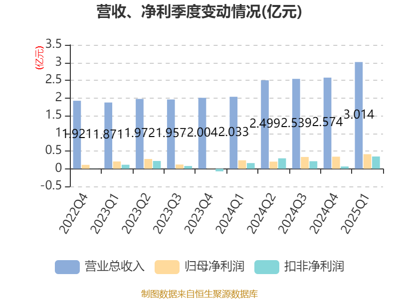 负债重大变化方面,截至2025年一季度末,公司短期借款较上年末增加24.46%,占公司总资产比重上升1.61个百分点;应付职工薪酬较上年末减少66.64%,占公司总资产比重下降0.69个百分点;其他应付款(含利息和股利)较上年末增加1490.87%,占公司总资产比重上升0.5个百分点;其他流动负债较上年末减少5.45%,占公司总资产比重下降0.21个百分点。