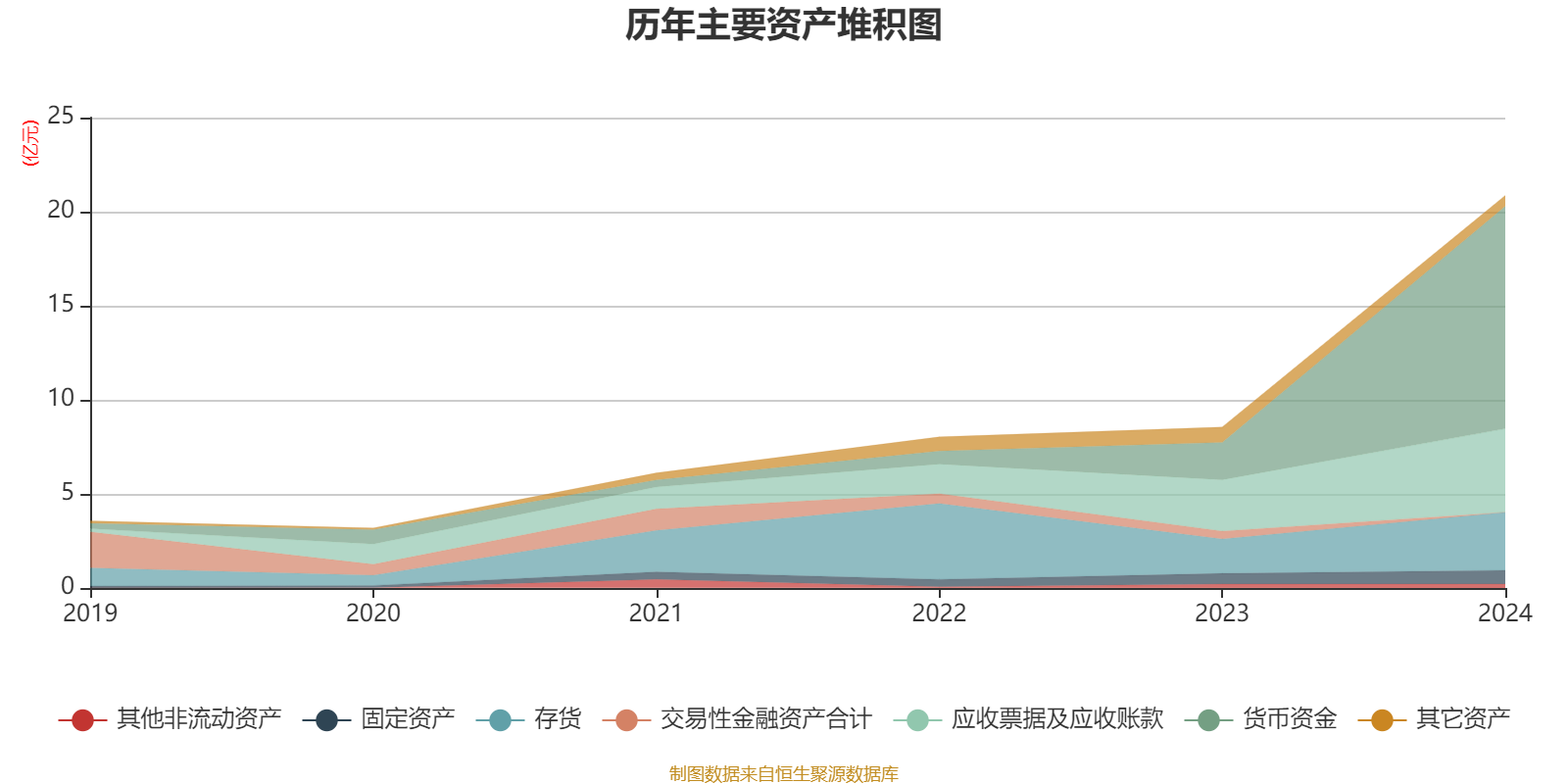 资产重大变化方面,截至2024年末,公司货币资金较上年末增加494.19%,占公司总资产比重上升33.38个百分点;应收票据及应收账款较上年末增加62.7%,占公司总资产比重下降10.62个百分点;存货较上年末增加69.2%,占公司总资产比重下降6.54个百分点;交易性金融资产合计较上年末减少100%,占公司总资产比重下降4.91个百分点。