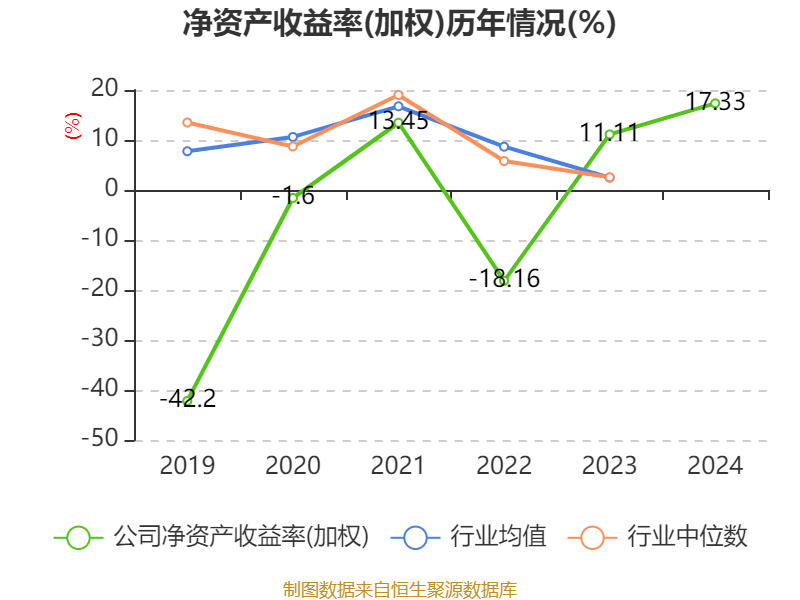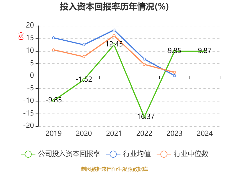 数据显示,2024年公司加权平均净资产收益率为17.33%,较上年同期上升6.22个百分点。公司2024年投入资本回报率为9.87%,较上年同期上升0.02个百分点。