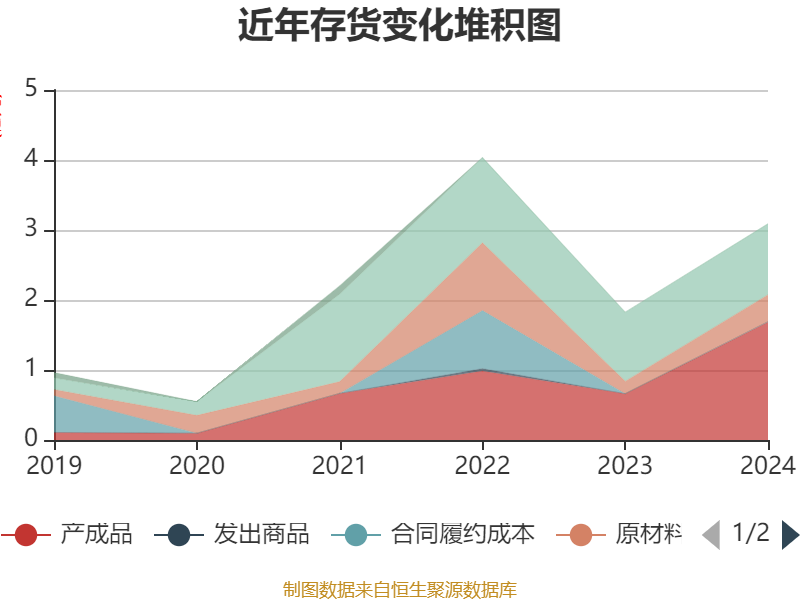 从存货变动来看,截至2024年末,公司存货账面价值为3.09亿元,占净资产的18.07%,较上年末增加1.26亿元。其中,存货跌价准备为3451.43万元,计提比例为10.05%。