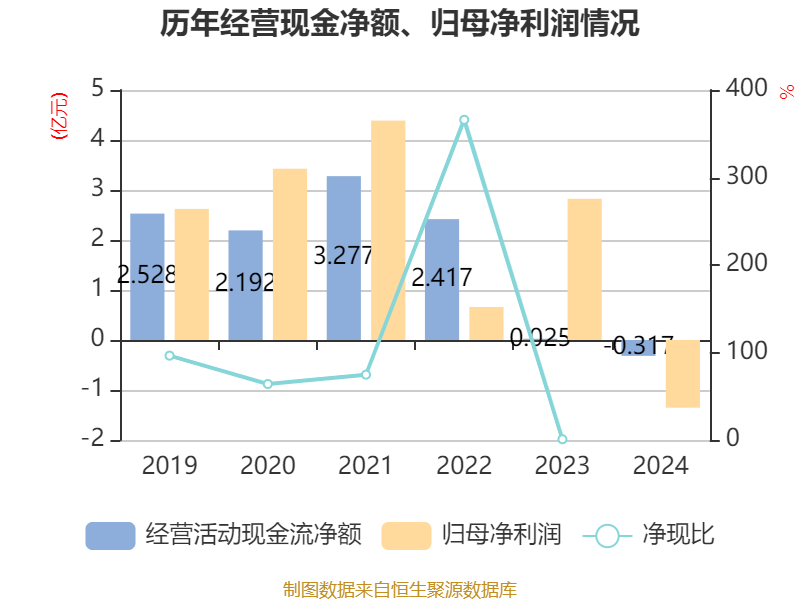 截至2024年,公司经营活动现金流净额为-3166.79万元,同比减少3412.43万元;筹资活动现金流净额-1.23亿元,同比减少9913.81万元;投资活动现金流净额-4994.25万元,上年同期为1.16亿元。