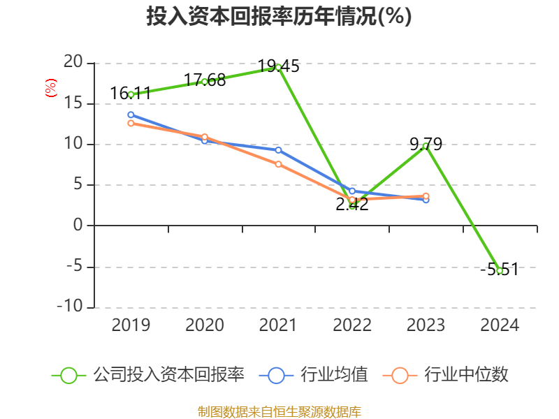 数据显示,2024年公司加权平均净资产收益率为-5.8%,较上年同期下降17.87个百分点。公司2024年投入资本回报率为-5.51%,较上年同期下降15.3个百分点。