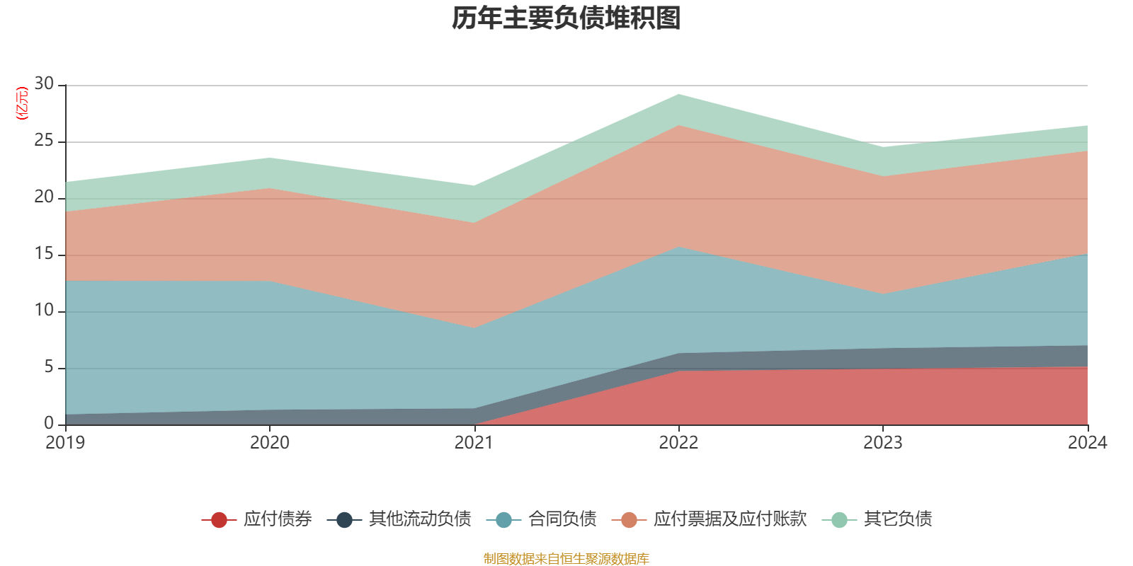 负债重大变化方面,截至2024年末,公司合同负债较上年末增加69.58%,占公司总资产比重上升6.99个百分点;应付票据及应付账款较上年末减少12.76%,占公司总资产比重下降2.47个百分点;应付债券较上年末增加3.9%,占公司总资产比重上升0.52个百分点;应付职工薪酬较上年末减少19.76%,占公司总资产比重下降0.39个百分点。