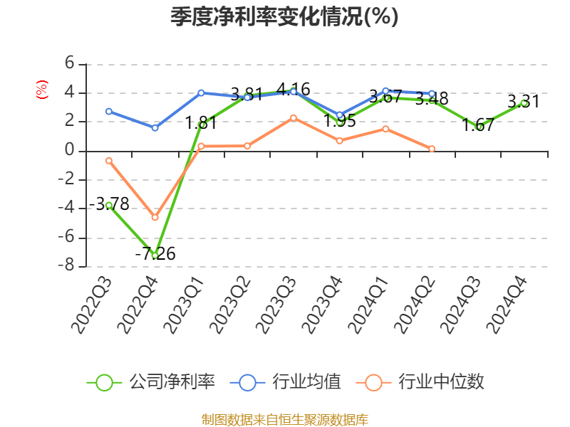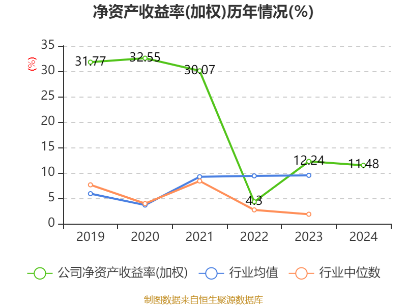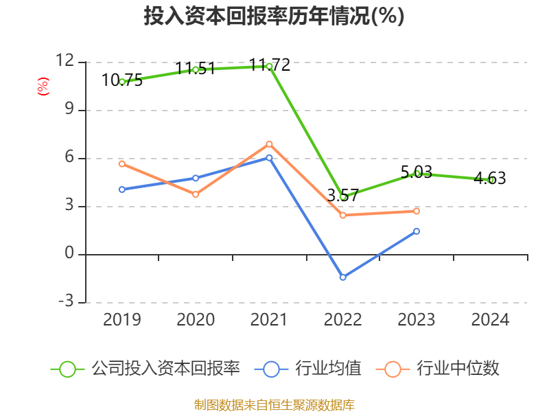 数据显示,2024年公司加权平均净资产收益率为11.48%,较上年同期下降0.76个百分点。公司2024年投入资本回报率为4.63%,较上年同期下降0.4个百分点。
