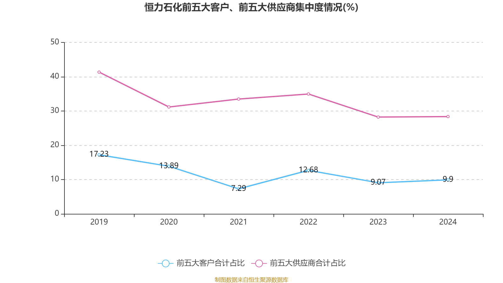 值得注意的是,中登公司数据显示,截至2025年4月11日,恒力石化26.64%股份处于质押状态。年报显示,第一大股东恒力集团有限公司质押11.82亿股公司股份,占其全部持股的56.25%;第二大股东恒能投资(大连)有限公司质押7.46亿股公司股份,占其全部持股的49.79%;第七大股东大连市国有资产投资经营集团有限公司质押1500万股公司股份,占其全部持股的21.77%。