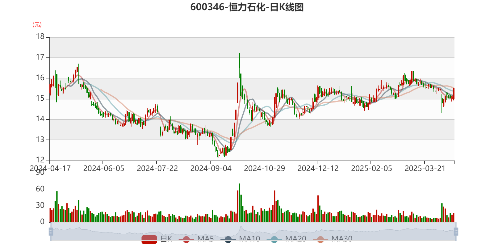 以4月16日收盘价计算,恒力石化目前市盈率(TTM)约为15.49倍,市净率(LF)约1.72倍,市销率(TTM)约0.46倍。