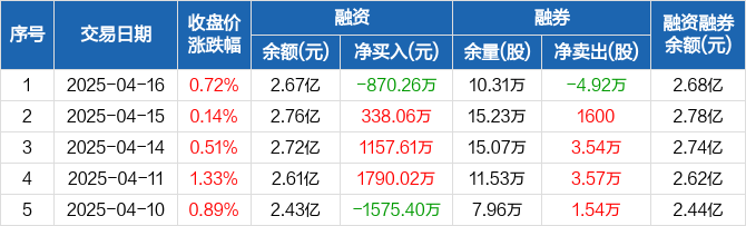 新洋丰融资融券信息显示,2025年4月16日融资净偿还870.26万元;融资余额2.67亿元,较前一日下降3.16%。