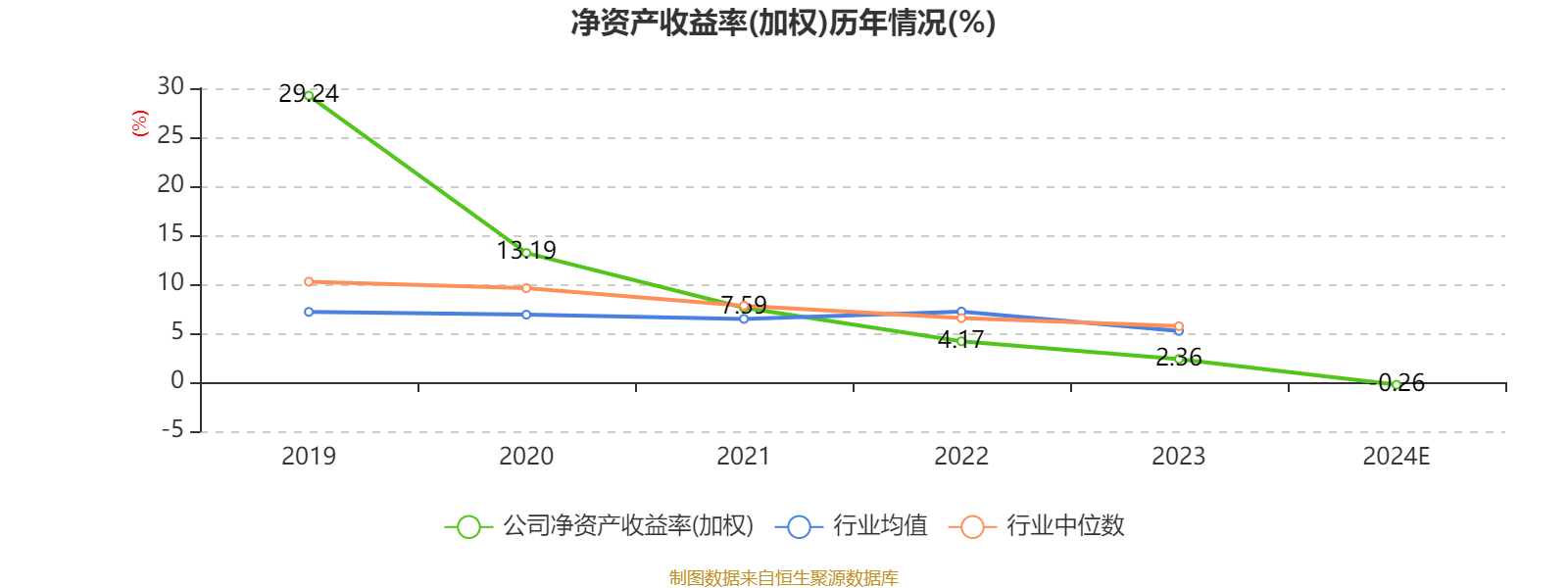 数据显示,2024年公司加权平均净资产收益率为-0.26%,较上年同期下降2.62个百分点。