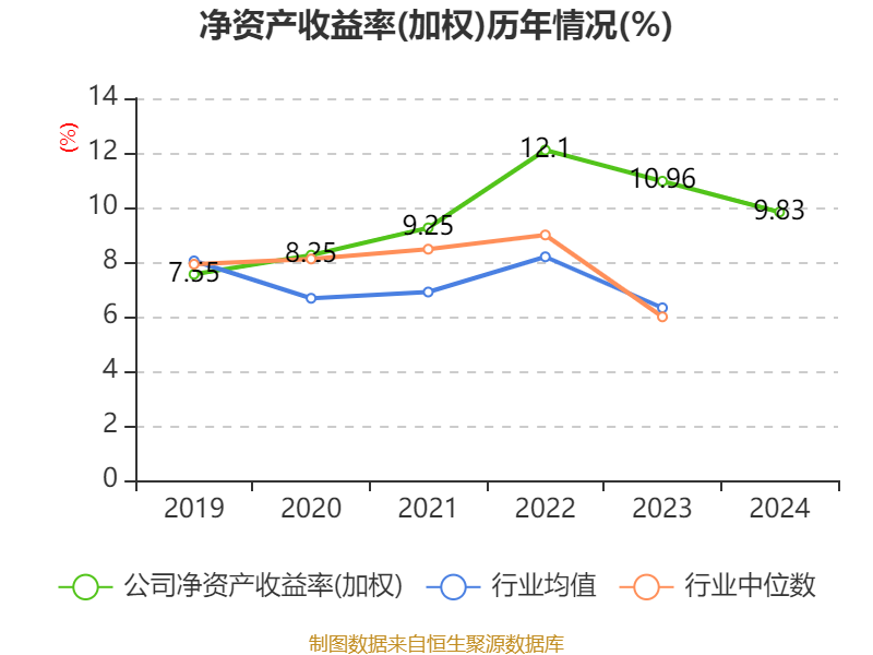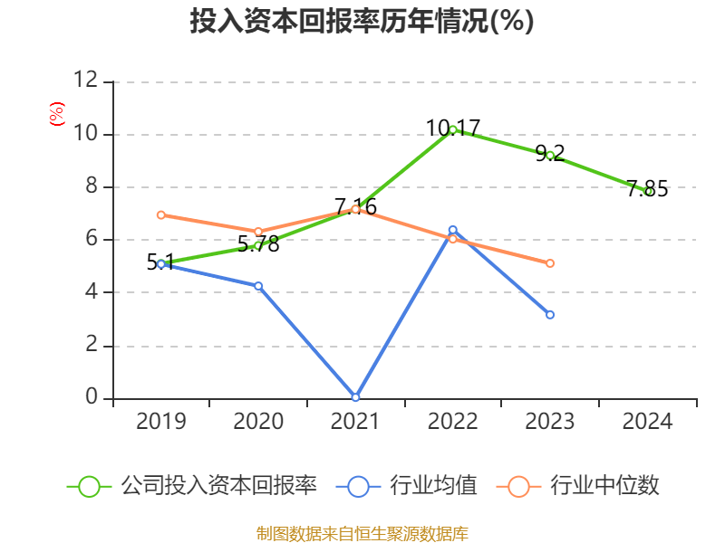 数据显示,2024年公司加权平均净资产收益率为9.83%,较上年同期下降1.13个百分点。公司2024年投入资本回报率为7.85%,较上年同期下降1.35个百分点。