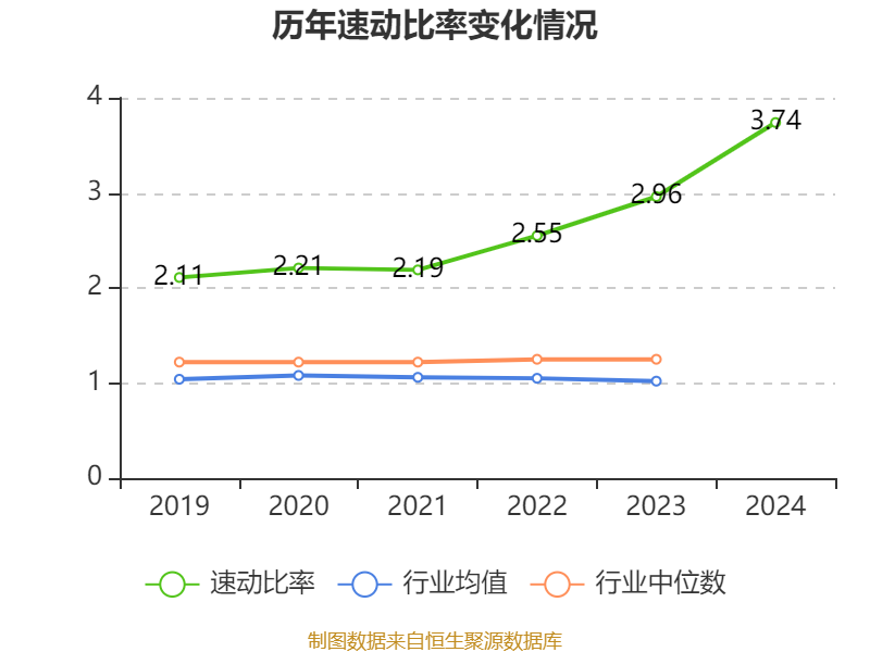 2024年,公司流动比率为3.74,速动比率为3.74。