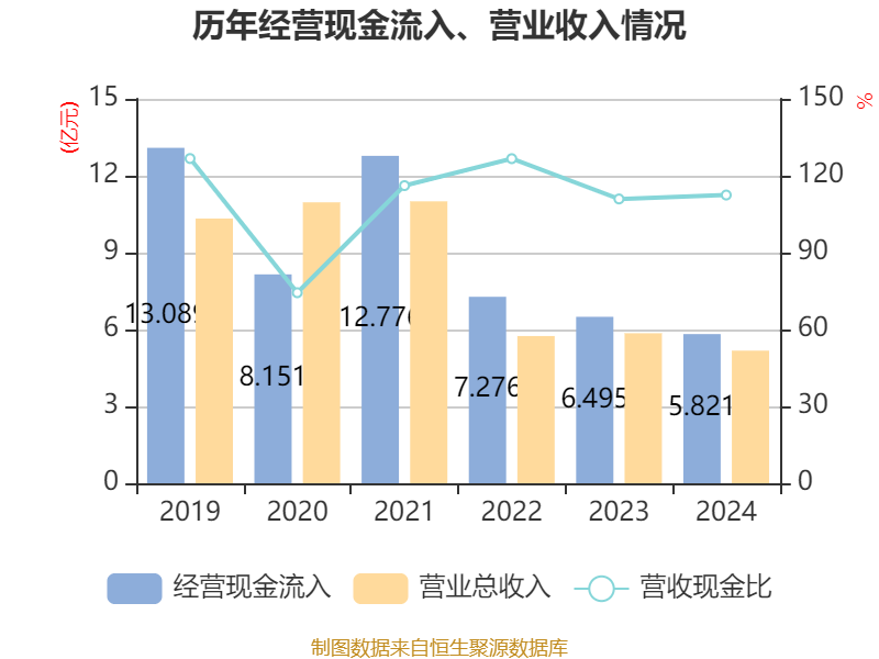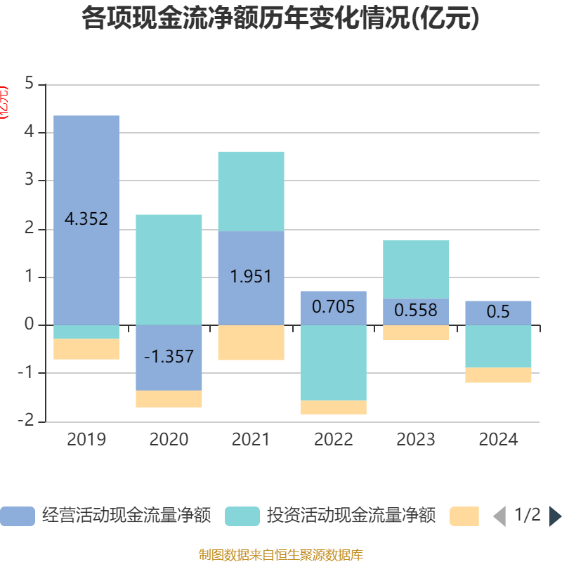 截至2024年,公司经营活动现金流净额为4995.25万元,同比下降10.45%;筹资活动现金流净额-3102.92万元,与同期相比基本不变;投资活动现金流净额-8820.81万元,上年同期为1.2亿元。