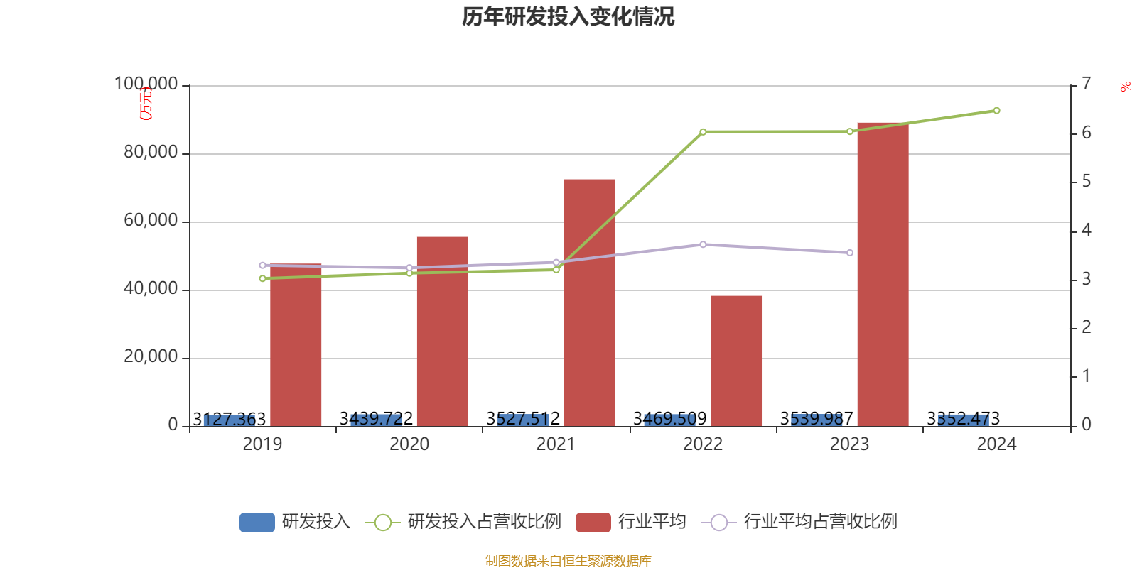 2024年全年,公司研发投入金额为3352.47万元,同比下降5.3%;研发投入占营业收入比例为6.48%,相比上年同期上升0.43个百分点。此外,公司全年研发投入资本化率为0%。