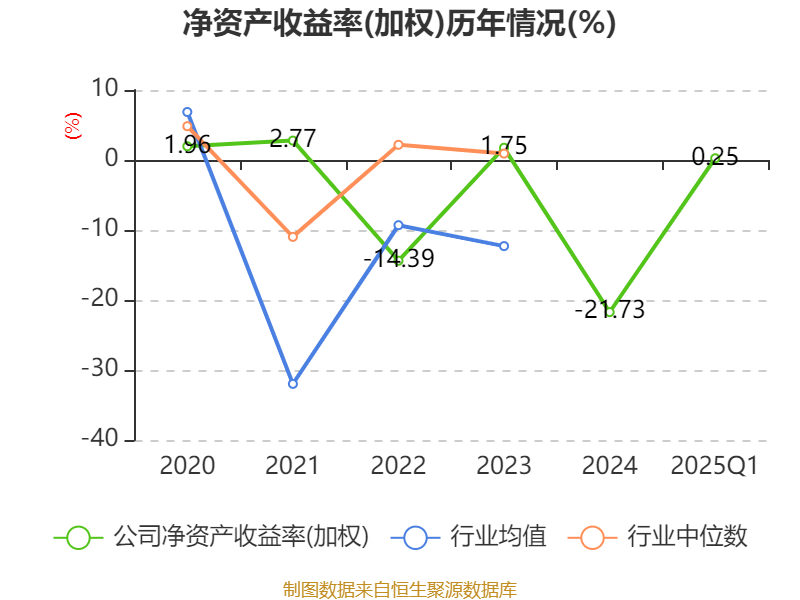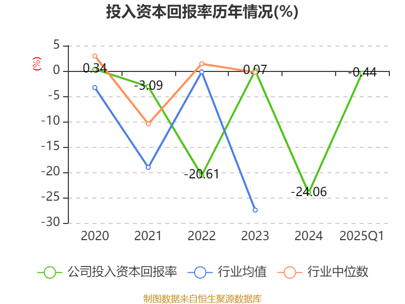盈利能力方面, 2025年一季度公司加权平均净资产收益率为0.25%,同比上升1.92个百分点。公司2025年第一季度投入资本回报率为-0.44%,较上年同期上升1.42个百分点。