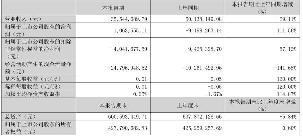 中证智能财讯创业黑马(300688)4月18日披露2025年第一季度报告。公司实现营业总收入3554.47万元,同比下降29.11%;归母净利润106.36万元,同比扭亏;扣非净利润亏损404.17万元,上年同期亏损942.53万元;经营活动产生的现金流量净额为-2479.69万元,上年同期为-1026.15万元;报告期内,创业黑马基本每股收益为0.01元,加权平均净资产收益率为0.25%。