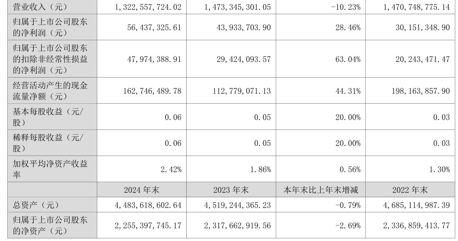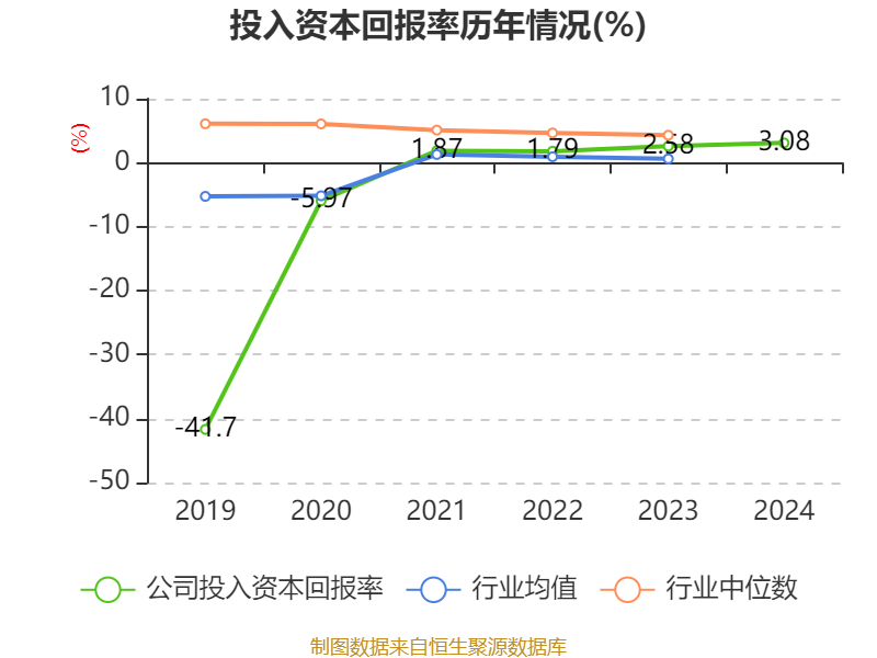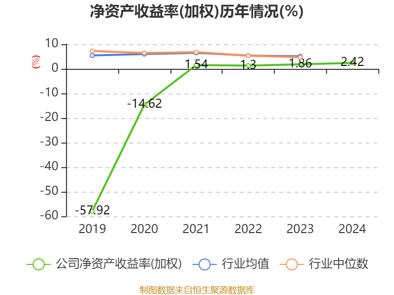 数据显示,2024年公司加权平均净资产收益率为2.42%,较上年同期上升0.56个百分点。公司2024年投入资本回报率为3.08%,较上年同期上升0.5个百分点。