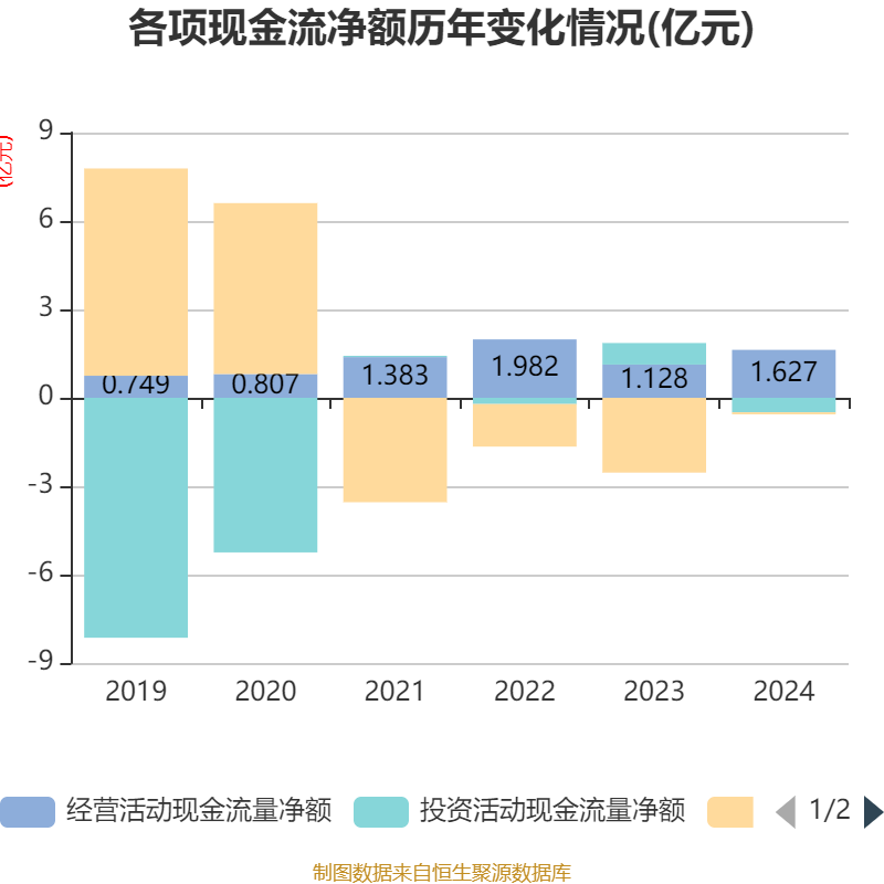 截至2024年,公司经营活动现金流净额为1.63亿元,同比增长44.31%;筹资活动现金流净额-689.26万元,同比增加2.47亿元;投资活动现金流净额-4912.47万元,上年同期为7313.32万元。