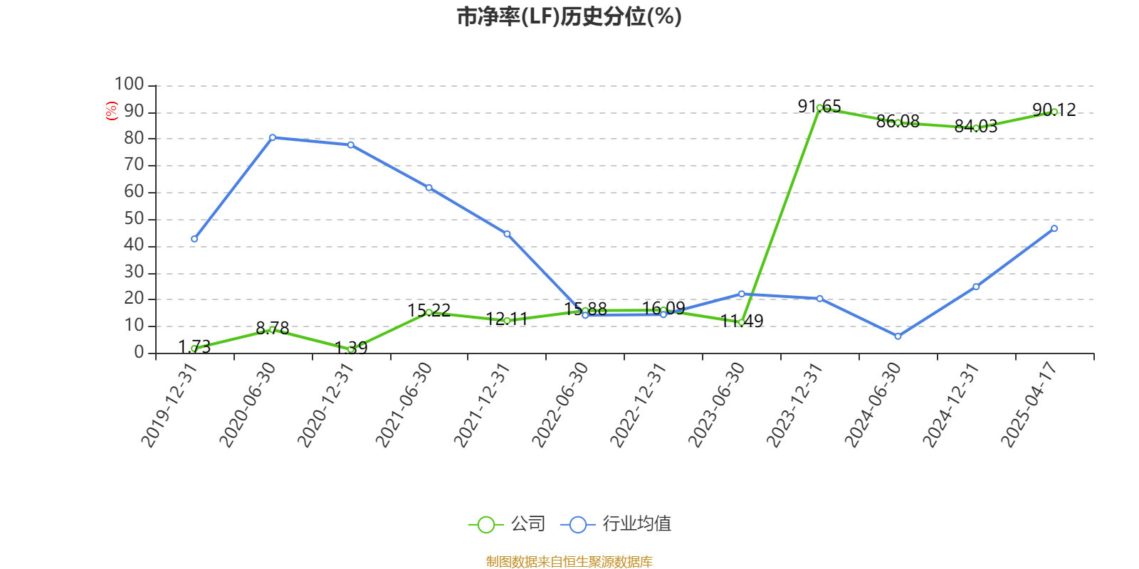 市盈率、市净率为负时,不显示当期分位数,会导致折线图中断。