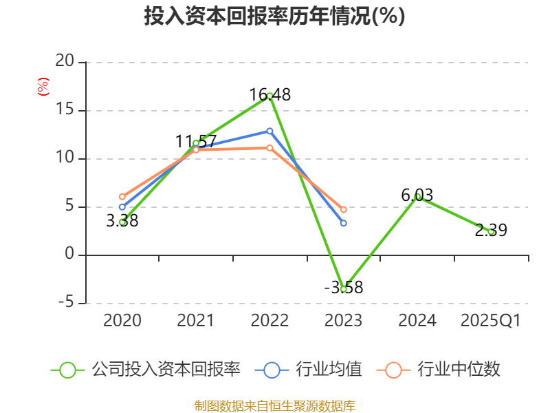 盈利能力方面, 2025年一季度公司加权平均净资产收益率为2.79%,同比上升1.94个百分点。公司2025年第一季度投入资本回报率为2.39%,较上年同期上升1.67个百分点。